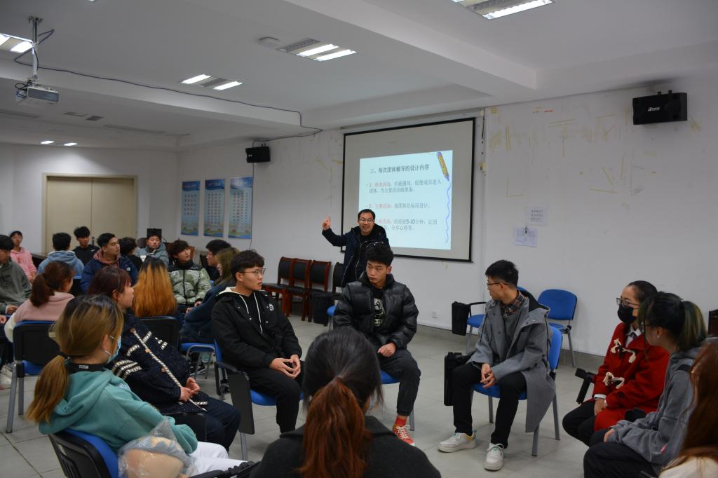 活动开始前,胡老师向大家介绍了团体辅导的目的、方法和注意事项,以及全情投入、真诚分享、尊重他人等团辅活动原则,并且希望同学们通过全身心投入的活动,更好地认识自己,调整和改善与他人的关系。